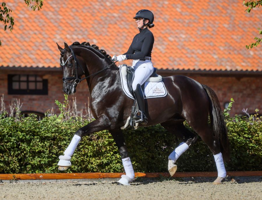 Bon Esprit zeigt alle Talente für ein künftiges Grandprix-Pferd. 2026 wird unser „guter Geist“ sein Debut in der Klasse M geben und mit Spannung erwarten wir den ersten Körjahrgang.