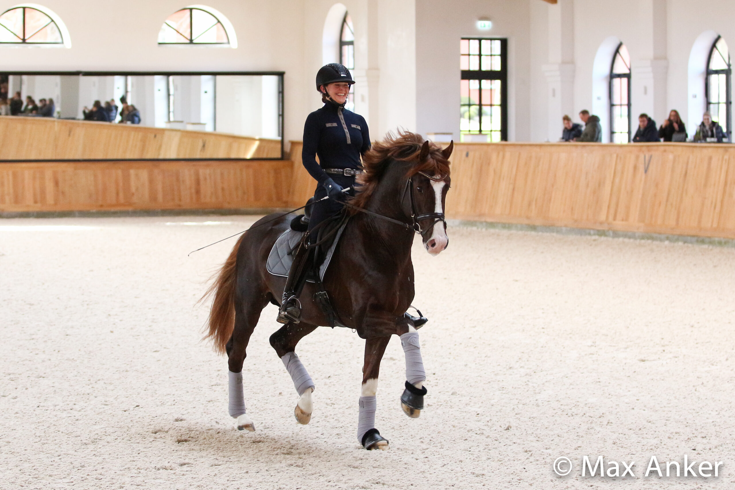 Dieser äußerst charmante Prämienhengst ist eine Freude unter dem Sattel wie im täglichen Umgang. Immer mit Motivation bei der Arbeit, sei es im täglichen Training in der Halle oder im Gelände wo er auch mit Freude jeden Baumstamm nimmt – Balance und Sportlichkeit sind ihm in die Wiege gelegt.